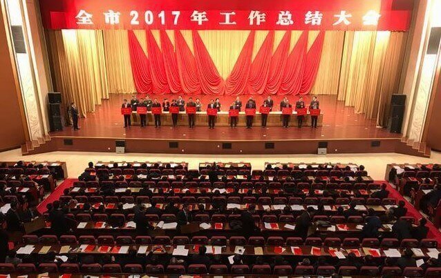全市2017年工作总结大会在国际会展中心举行,市委副书记、市长张永霞出席并作重要讲话。大会对过去一年涌现出来的一批成绩突出的先进集体和先进个人给予表彰市领导为2017年度经济社会发展综合考核先进集体和先进个人代表颁奖,并兑现了制造业强市和创新驱动发展战略奖励政策。宁夏远程能源科技建设有限公司被授予“经济发展功勋企业”,公司党委书记、董事长杨恒坤被授予“经济发展功勋个人”荣誉称号。